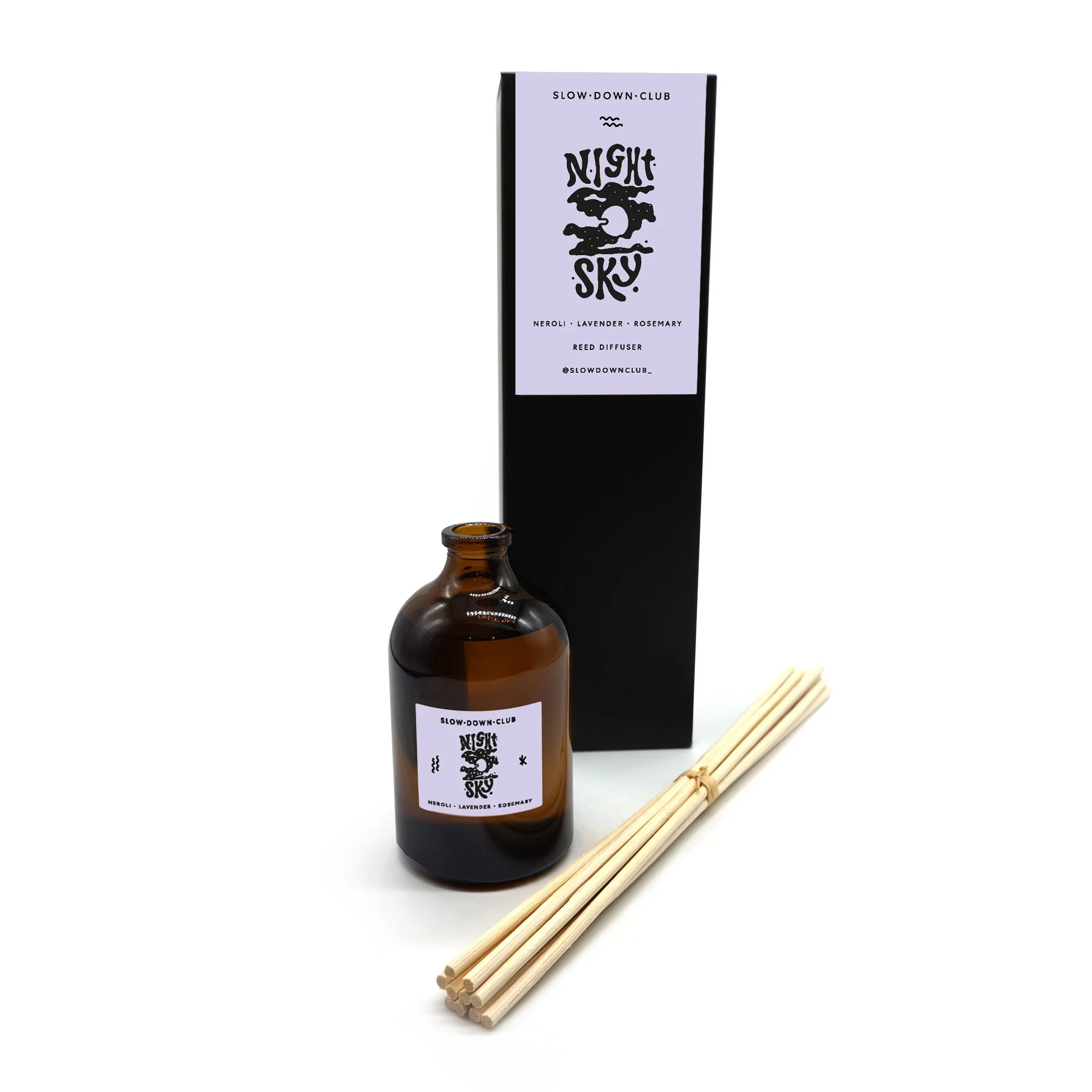 Each diffuser comes in an amber glass bottle, beautifully packaged in a black box with 10 natural rattan reeds.